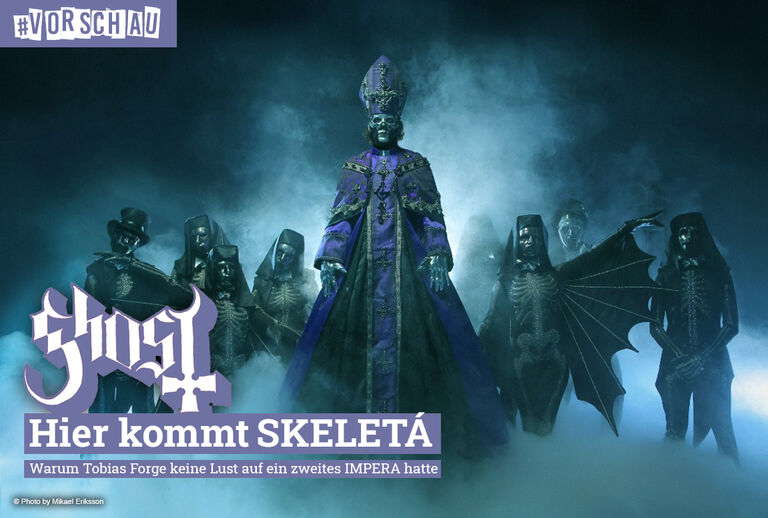 • Neuigkeiten vom Klerus: Am 25. April 2025 wird ein neues Ghost-Album aus dem Pfuhl der Sünde emporsteigen. Das sechste Werk der schwedischen Rock-Mystiker trägt den Titel SKELETÁ und präsentiert uns einen neuen Würdenträger: Papa V Perpetua. Unsere Vorschau findest du wie immer - nur in deinem EMP #MAG!
